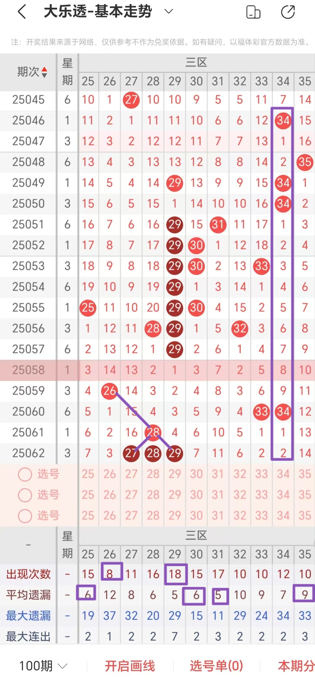 依据以上分析,本期本区分析出号个数0-1,防有断区风险!分析均为个人观点,仅供参考!
