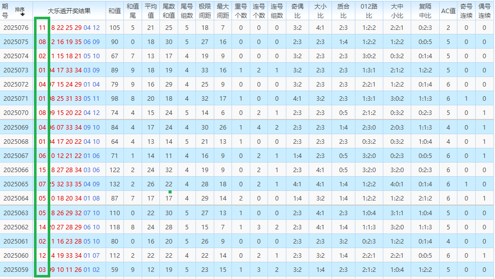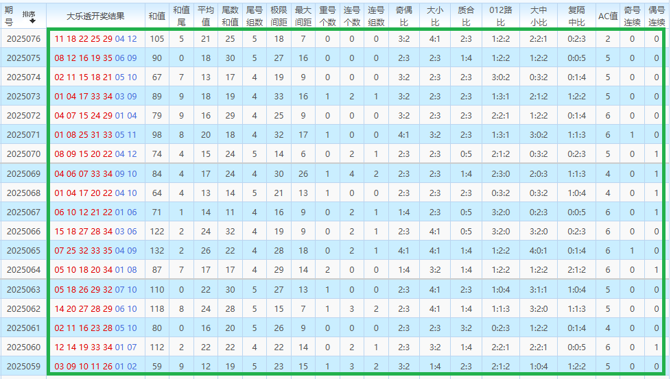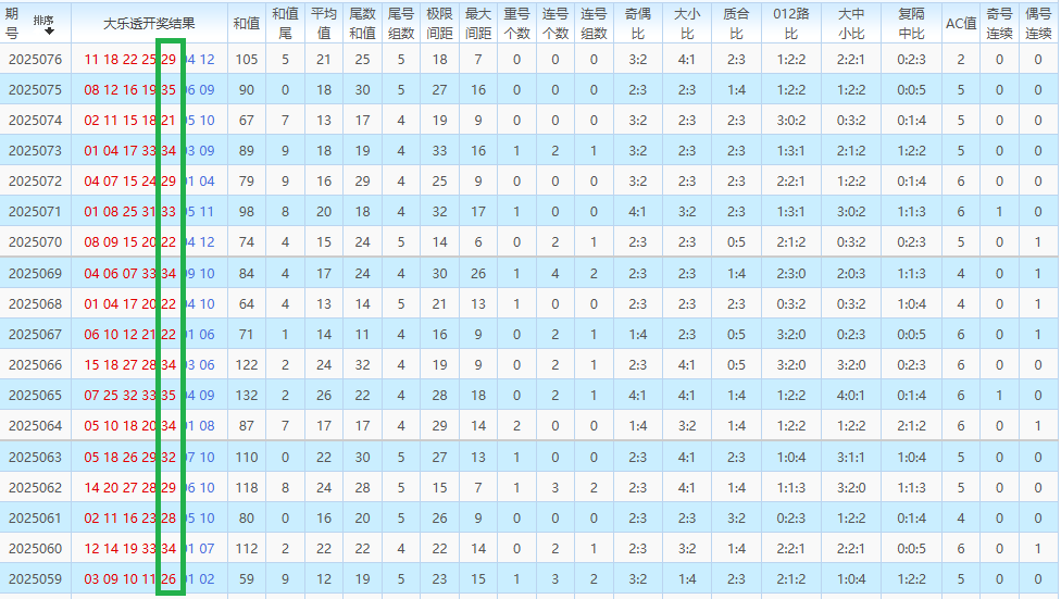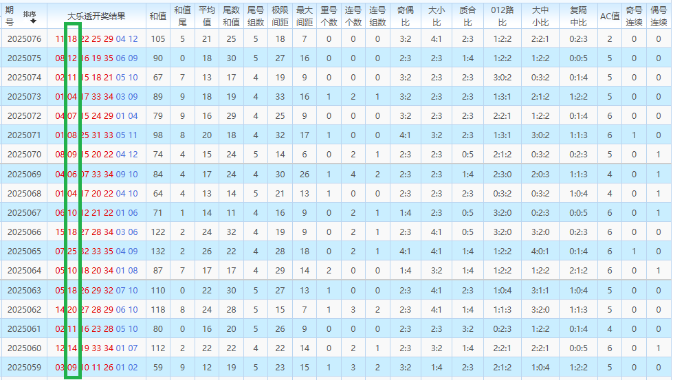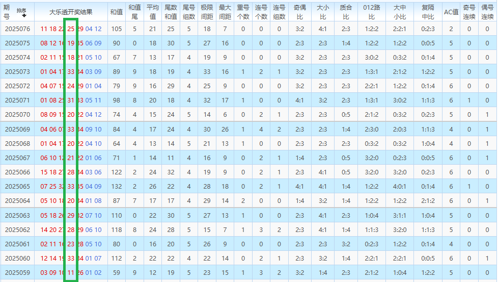 首先回顾大乐透25076期开奖结果:11 18 22 25 29+04 12
