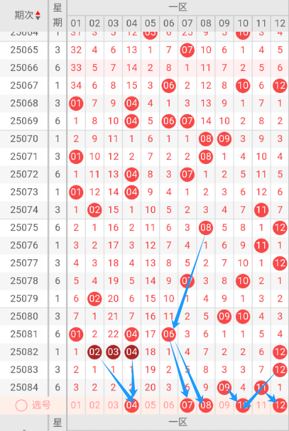 红球:04,07,08,10,12,14,16,21,22,24,25,31,32,33,35
