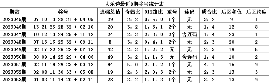 马姐大乐透第2023054期:上期前区胆码正确,本期前区必出重号