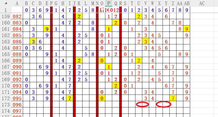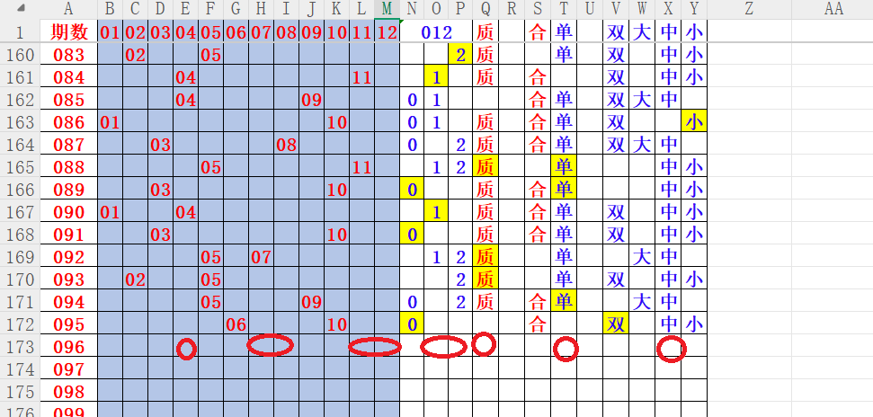 如上图4,012路分析012路,本期重点12路。重点 04 07 08 11 12
