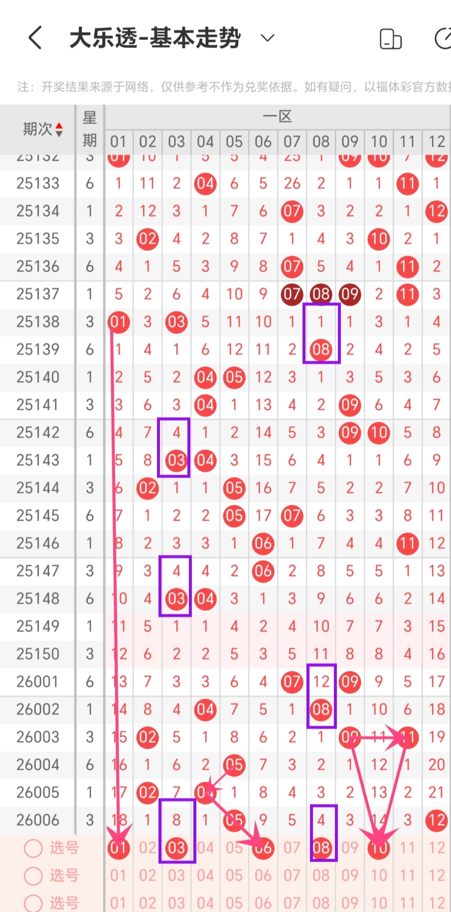 免费文章:奈斯做数据26007期大乐透分析(上期三胆中一,四胆中二,本期非常好)