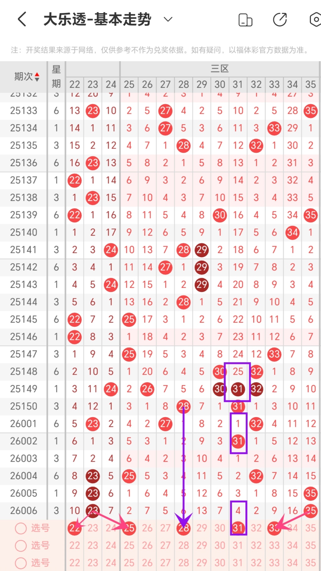 凤尾:22-25-28-31-33