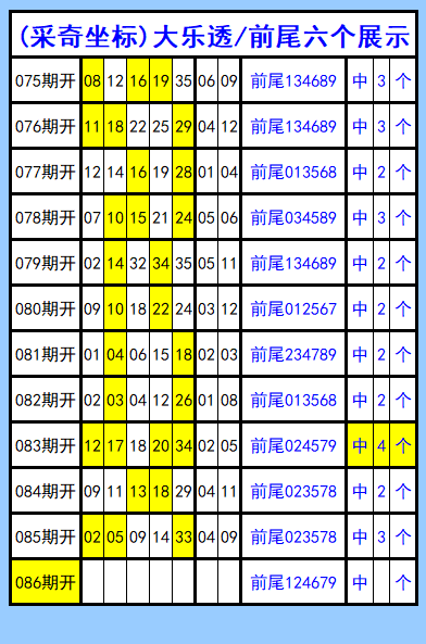 大乐透第086期图文(采奇坐标),前尾六个展示