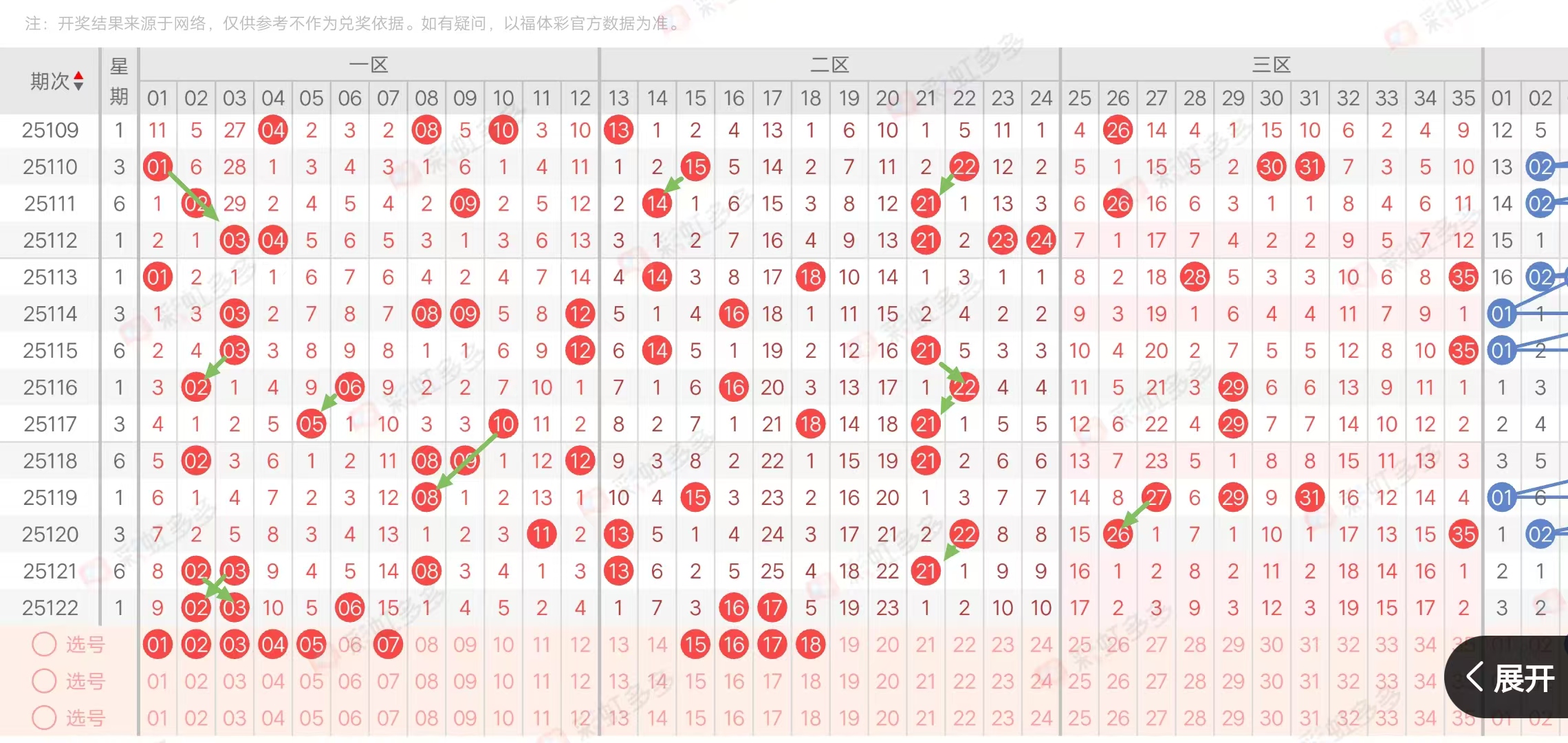 大乐透隔码:隔一期的号码,也是遗漏1的号码,
