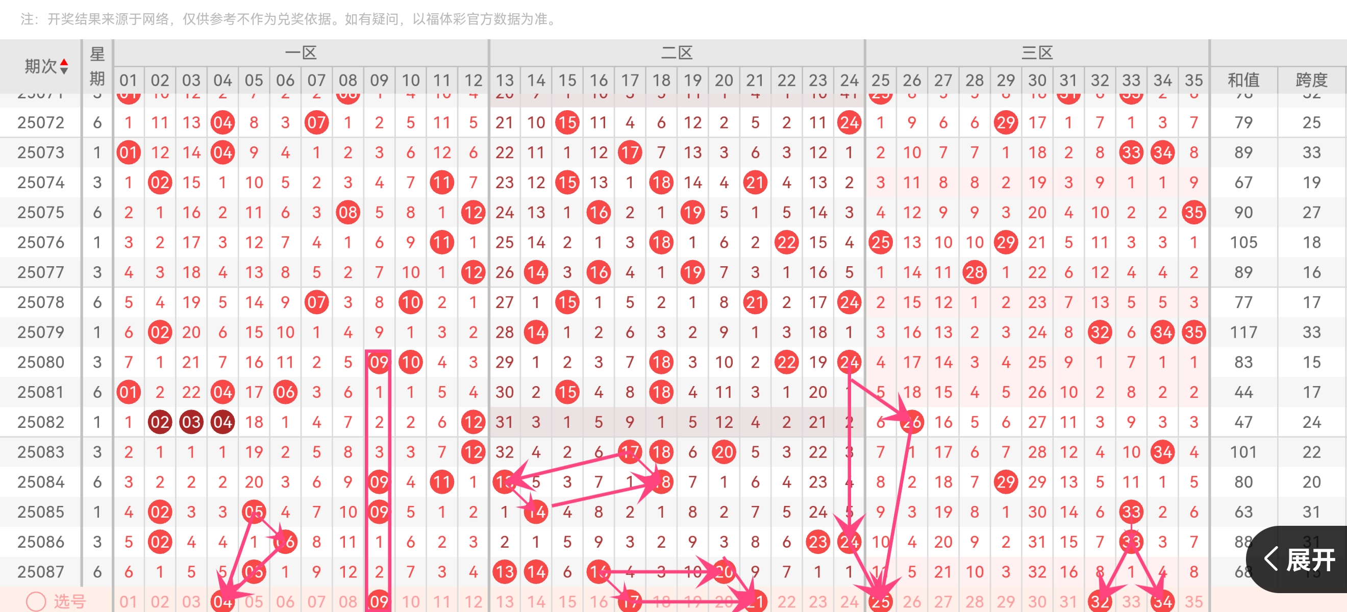 后区冷号爆发 :杀号03冷开,验证冷号突袭风险→ 本期后区首位增设冷号观察池 ;