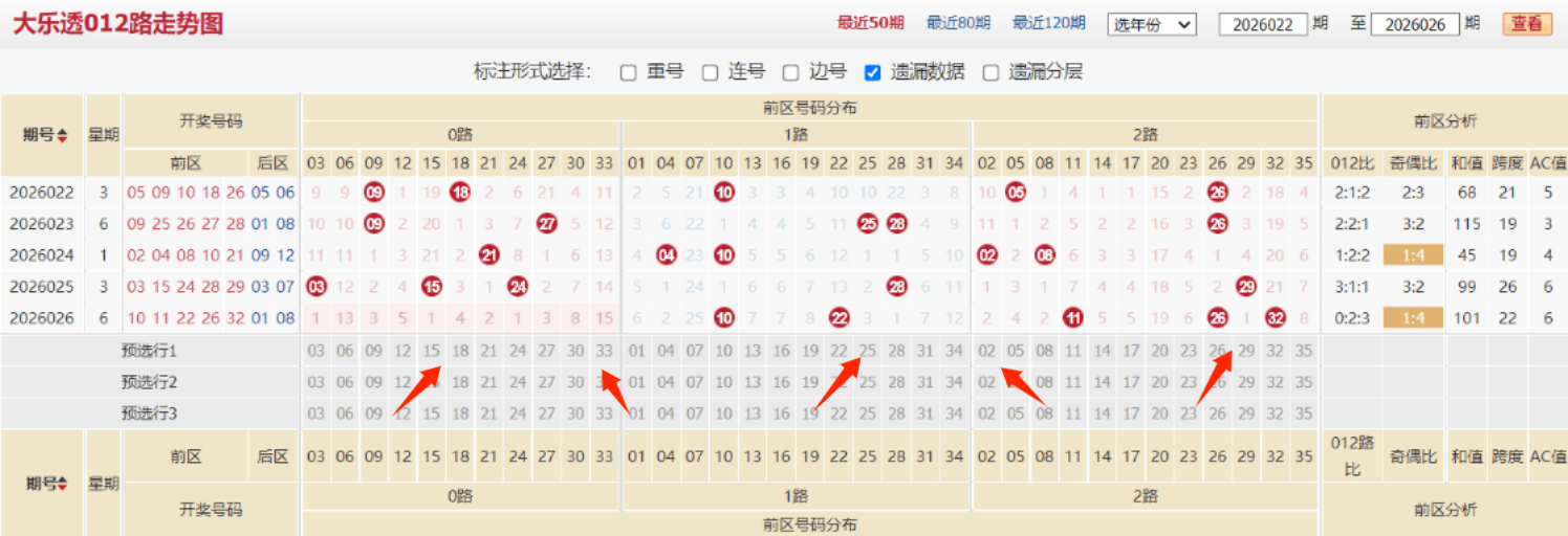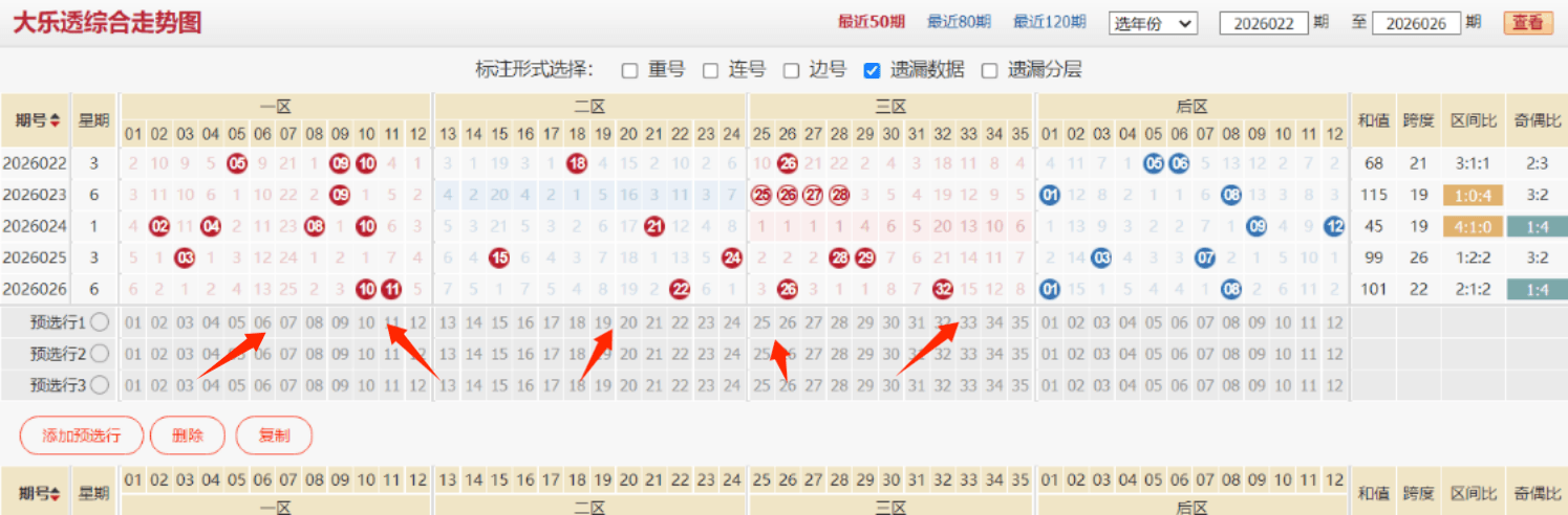 26027期大乐透思路前瞻:关注本期二区热度上升,上期胆码命中本期再战5+2