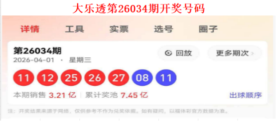 1. 近期走势:上期(26034期)开出11、12、25、26、27 + 08、11,前区奇偶比3:2,和值101,出现两组连号(11-12和25-26-27)。