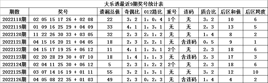 大乐透第2022127期:后区重防全大反弹