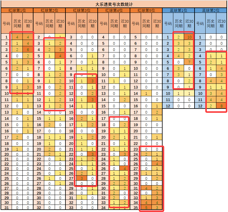 统计历史同期、近30期奖号频率,热门摸底,灵感来源