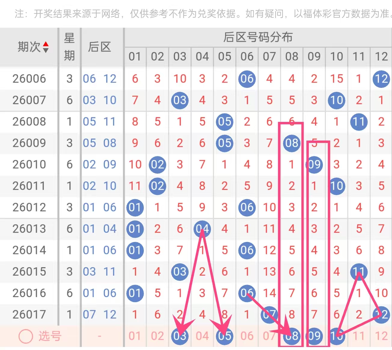 小号区(01-12):补缺02、07、11,避开近期高频的04、05、06;