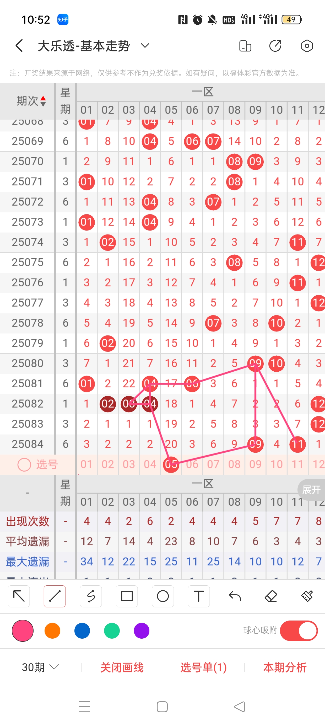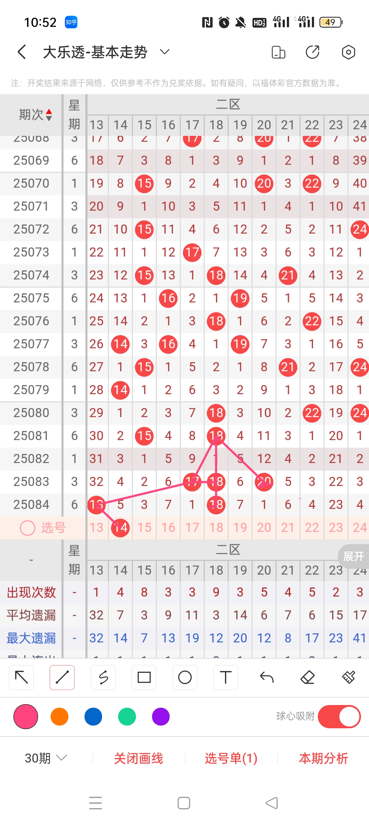 近5期第六位号码012路对比:0:2:1:2:1,1/2路热度高,本期着重0路。邻孤传对比:1邻4孤0传,孤号热度高,本期着重邻传。