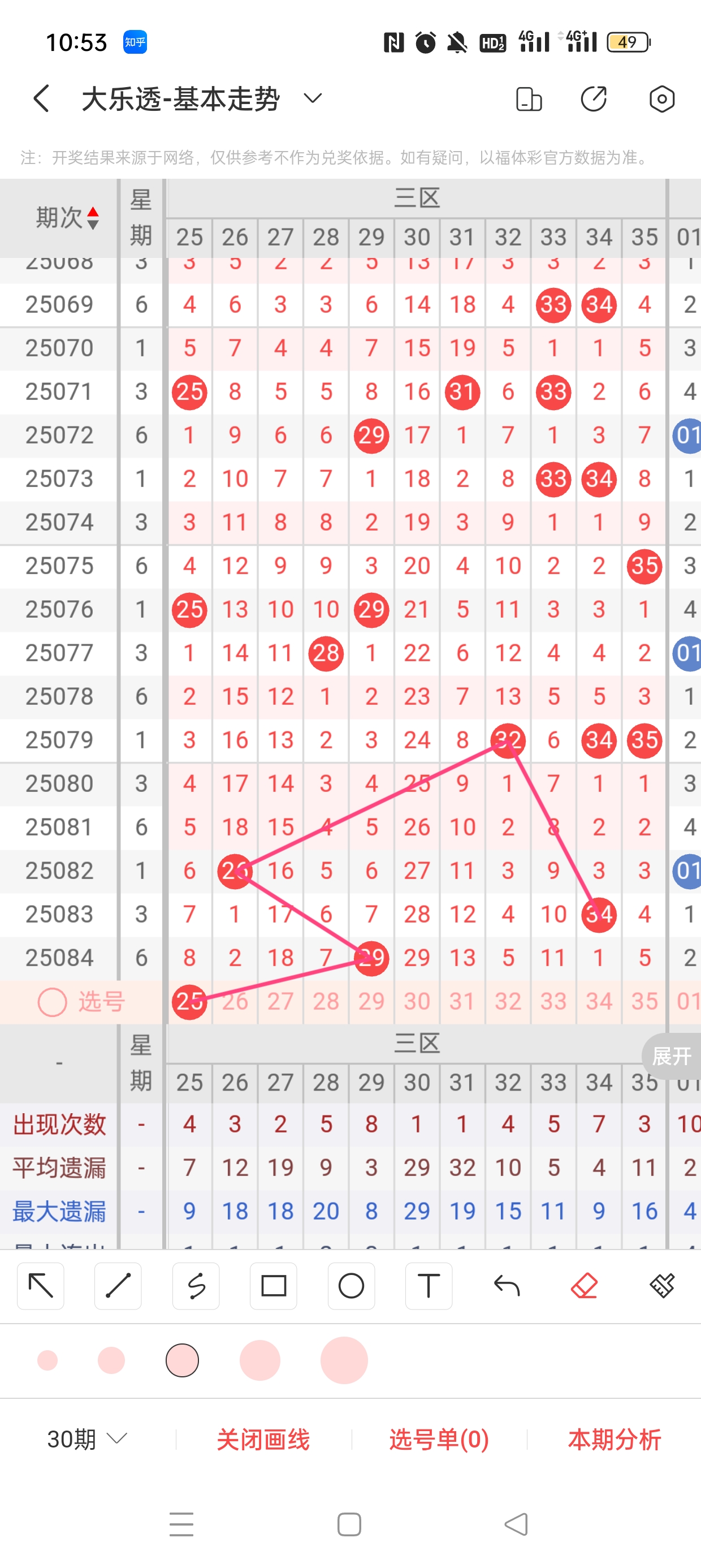三区(25-35)近82期本区邻孤传41邻62孤8传,孤号热度高,本期着重邻传。近82期本区012路28:37:42,1/2路热度高,本期着重重0路。25已遗漏8期,与29之间呈现向左遗漏递减态势,需防。