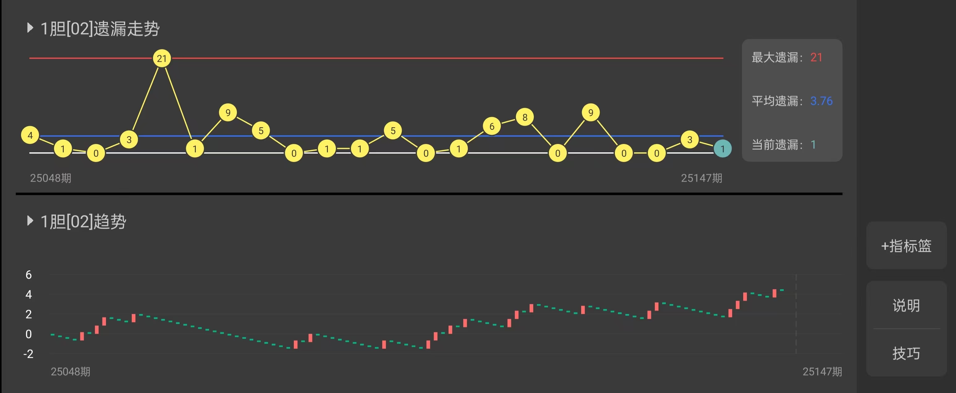 后区中位数与平均数的恒等性:由于后区仅包含两个数字,其中位数与平均数在每期均相等。这一特性源于统计定义,但值得注意的是,这些值在近11期内波动范围较大(从2.5到9.5),表明后区奖号的选择具有较宽的离散性。然而,11期整体后区平均数和中位数均约为6.0,暗示后区数字可能围绕中心值6波动,但每期具体组合仍显随机。