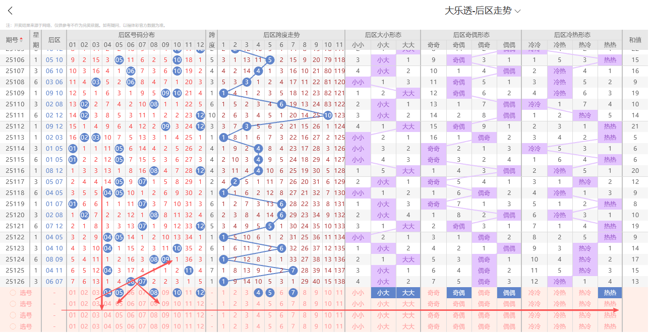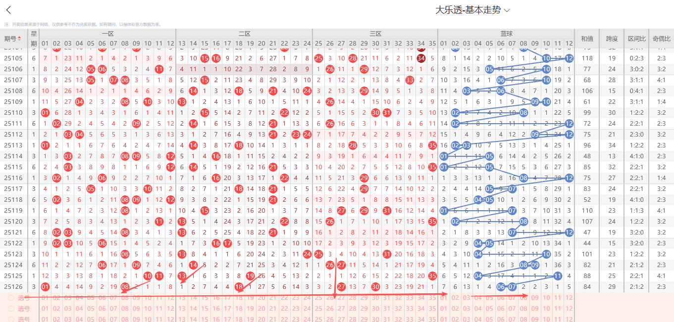 ③和值:结合对区间的比例数据来看本期和值参考80~120范围参考