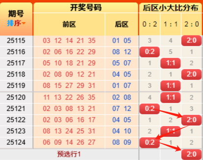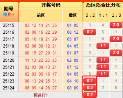 上期后区开出小大比为0:2。