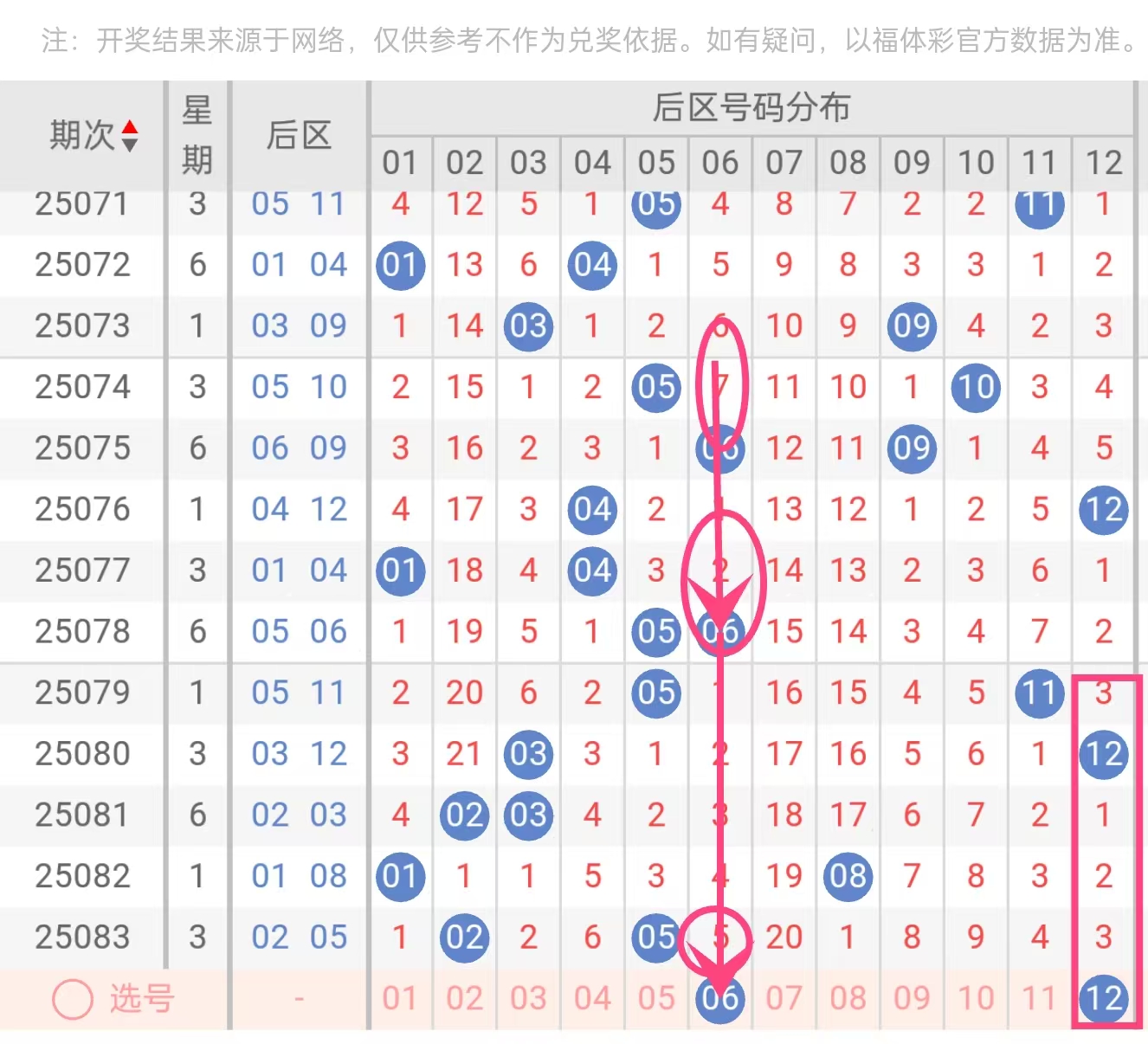 - `12`:活跃号(10期3次),与06构成完美跨度(跨度6)