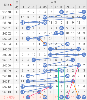结合蓝球走势,推荐关注号码:02、05、08、09、11