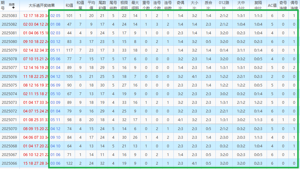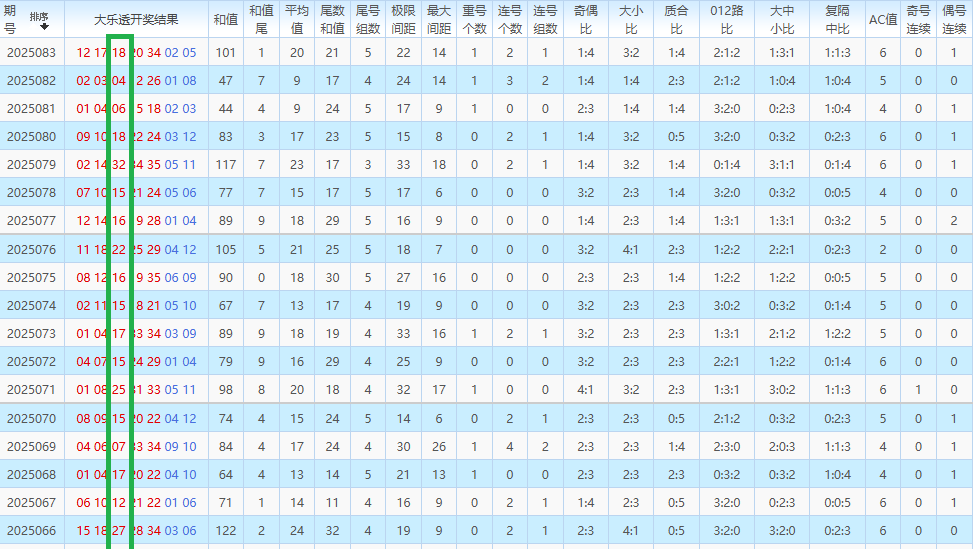 首先回顾大乐透25083期开奖结果:12 17 18 20 34+02 05。