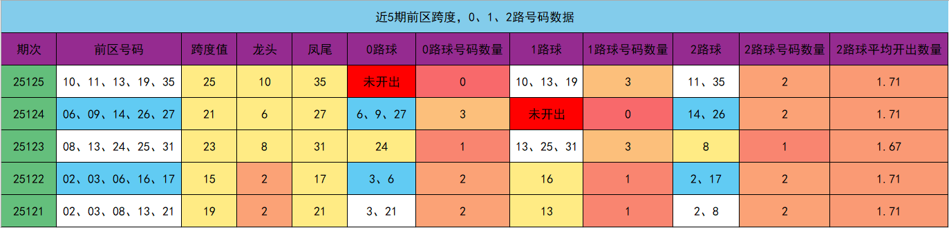 012路比: 上期0路开出0枚,1路开出1枚(10, 19),2路开出3枚(11, 13, 35)。本期关注0路和1路号码回补,推荐比例 2:2:1。