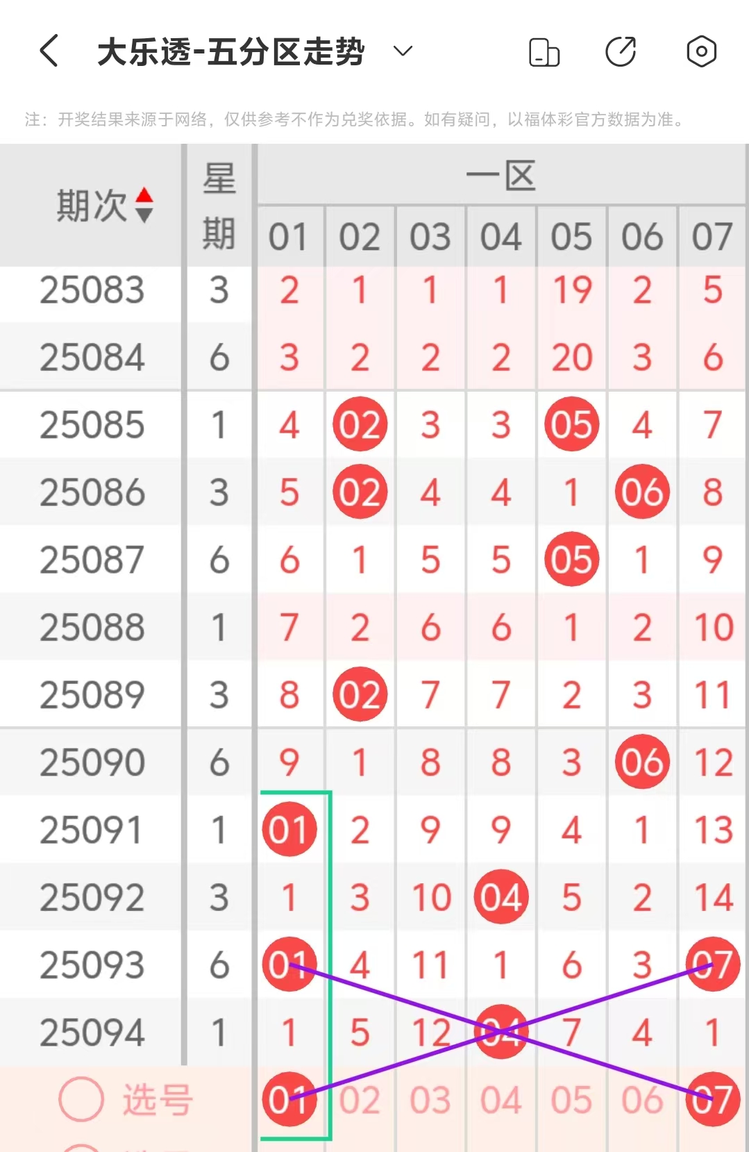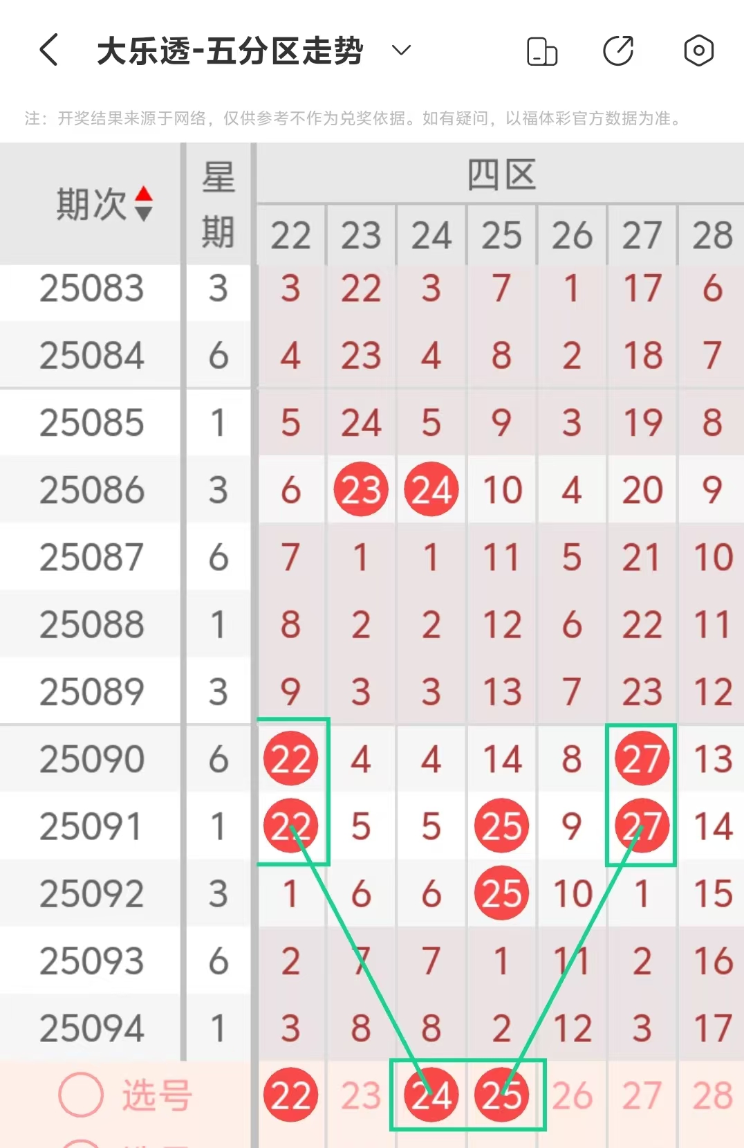 25094期开出热号1个,温号1个,冷号0个,本期关注冷号,热号。