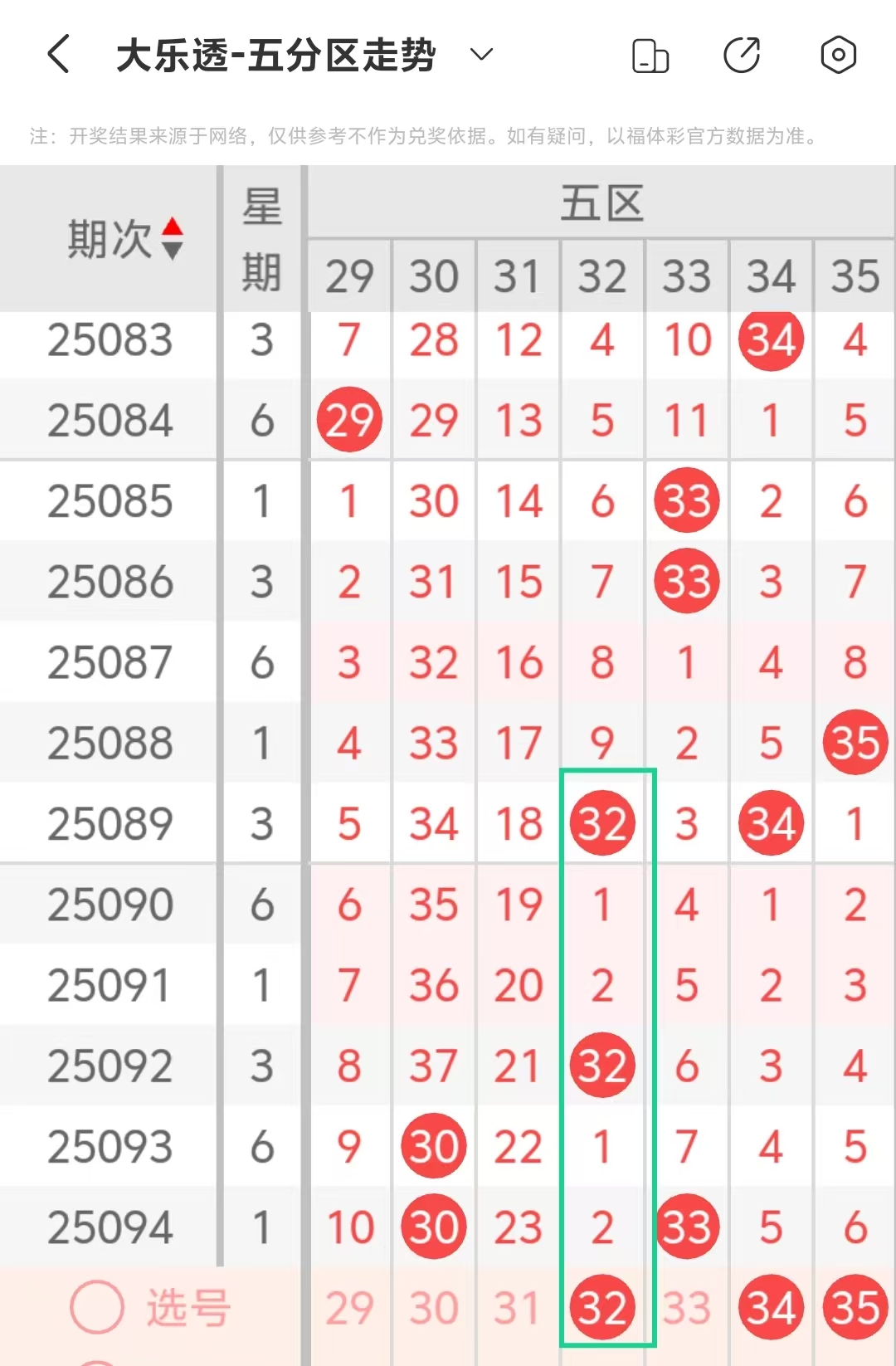 超i大乐透截至2025094期遗漏最大的号码是23期的31号,理论上在23期中每个号码应该出现3.2次,超出4次的号码就是近期热号,低于3次的号码就是近期冷号,出现3-4次的号码就是近期温号。