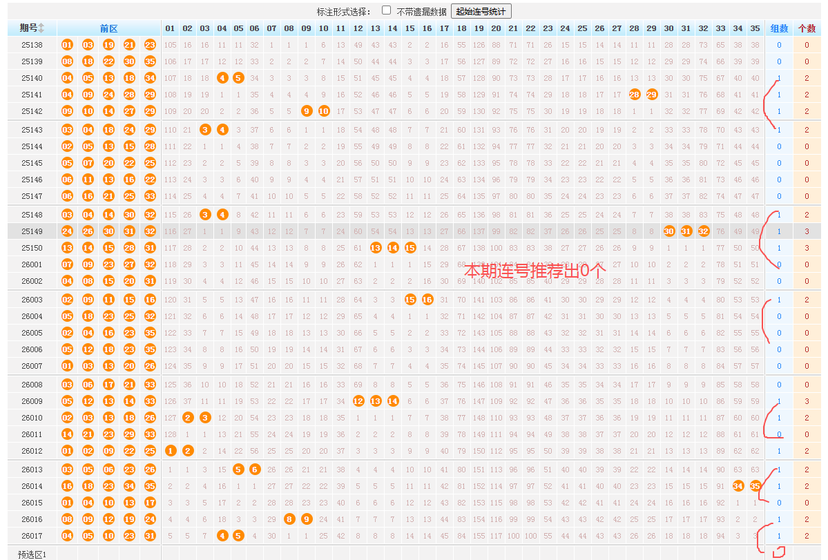 三、通过相关数据分析得出本期排除前区不出的号: