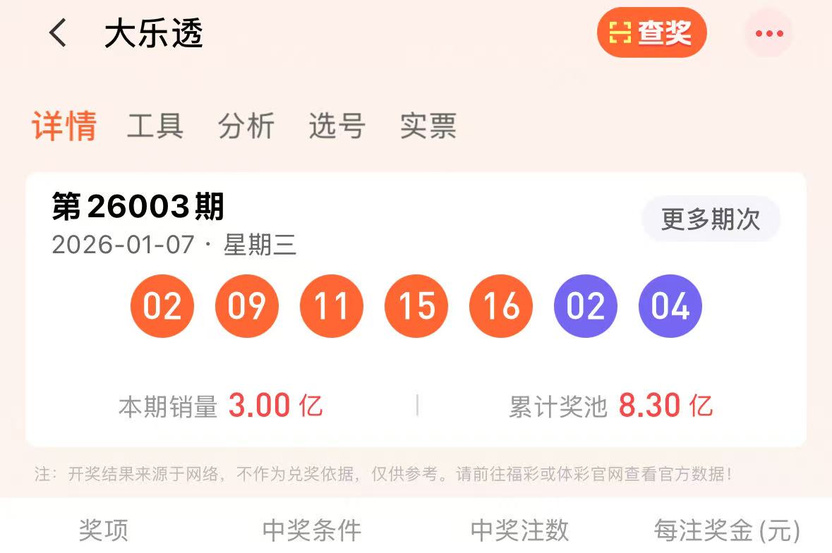 上期大乐透开奖结果:02.09.11.15.16+02.04