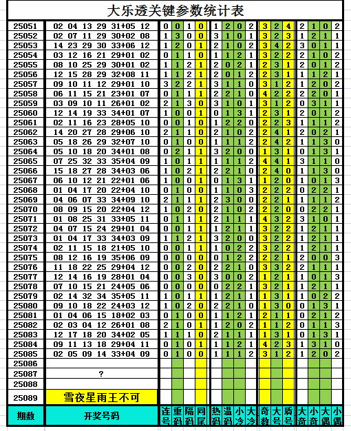 以下是作者手工统计的大乐透关键参数统计表,对喜欢参数分析、过滤缩水、选号胆杀的技术性大乐透爱好者有所帮助,其它读者可略过不看。