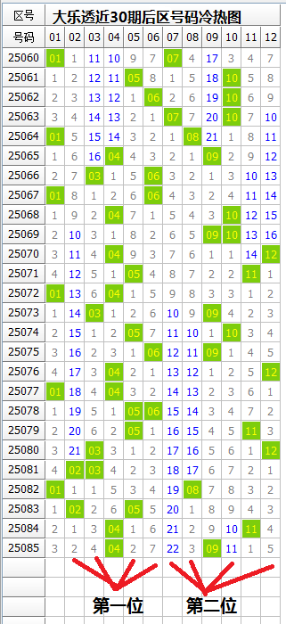上期热、温、小、大冷为1112组合形态。追踪数据请参考前面的大乐透关键参数统计表。