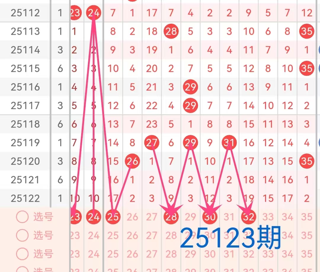 2. 凤尾号码分析:凤尾号码(前区最大号码)上期是17。这是一个小的凤尾,过去十期内,凤尾号码多集中在18到35之间,其中3字头号码表现较为活跃。因此,本期应重点关注18-35区间的数字,特别是号码25、28、30、32