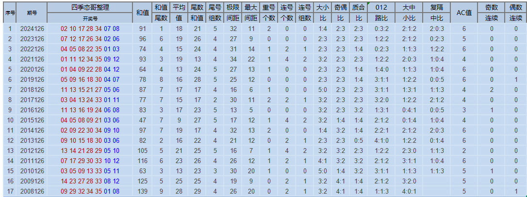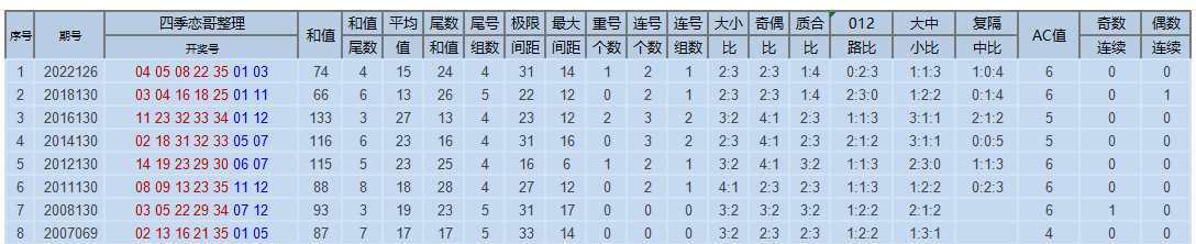 下图为大乐透彩种诞生以来每年的126期各类数据以及历年同日期开奖数据,各位大佬及彩友们请拿走~