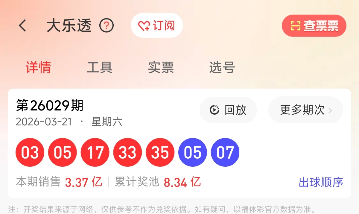 首先让我们回顾一下上期大乐透26029期的开奖为03、05、17、33、35,蓝球05、07。前区和值93,前区跨32,区间比为2:1:2,奇偶比为5:0。