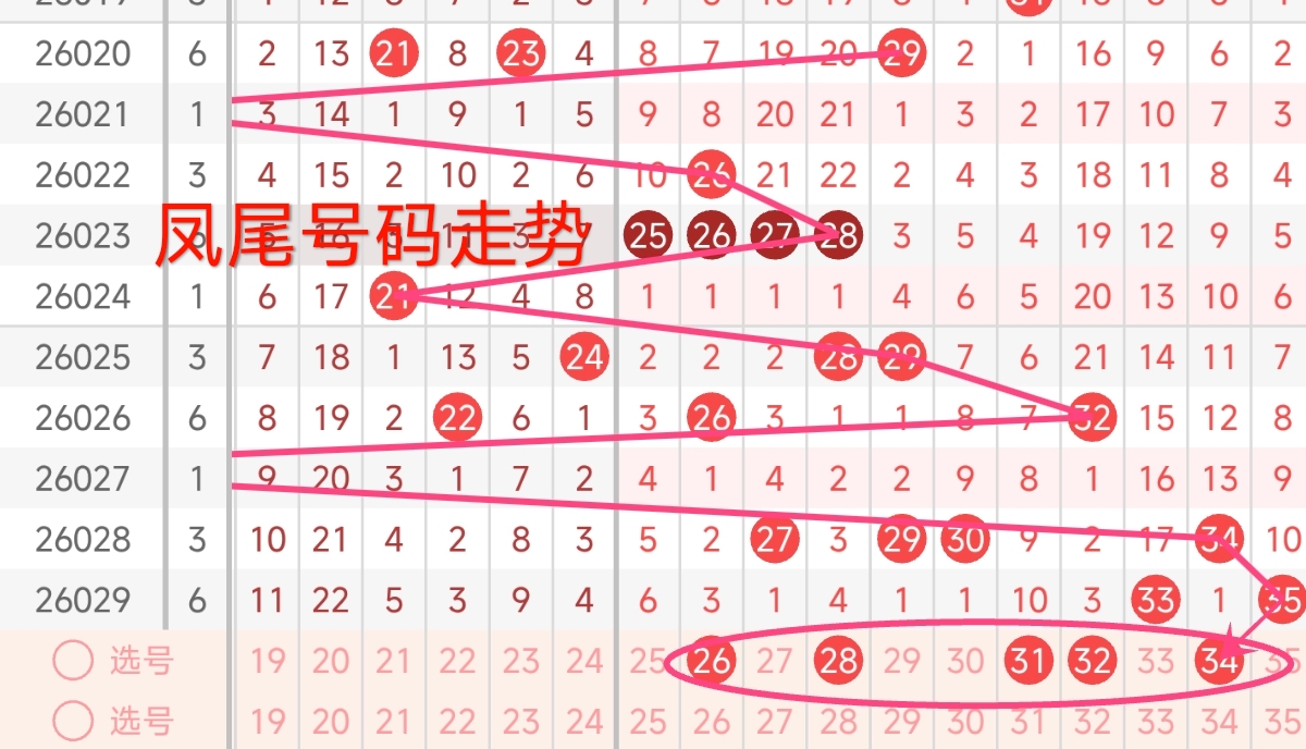 上期凤尾号码为35,振幅上升了1点,开出奇数号码。从近期凤尾号码的走势来看,近期凤尾号码波动较大。上期凤尾号码为35。观察近期凤尾号码, 近期凤尾号码在高低号码之间波动频繁,近期高位号码的热度已经完全释放,预计本期凤尾大概率回落至中高位区间,重点关注26-34区间的号码,继续停留在33以上极端高位的可能性极低,会向中高位区间逐步回调,填补凤尾位置的长期空白,走势呈现明显的回落态势。本期还需注意连续多期漏出的号码,需重点关注,有回补凤尾号码的趋势 。综合考虑,本期凤尾号码可以重点关注26、28、31、32、34。