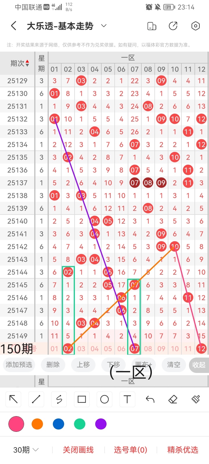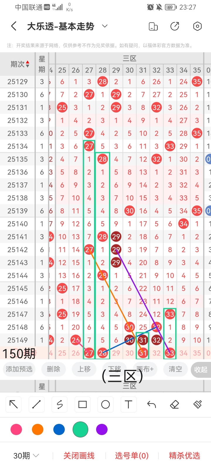 通过以上对上期的简单回顾,下面进入大乐透第2025150期(下面简称本期)的选号分析: