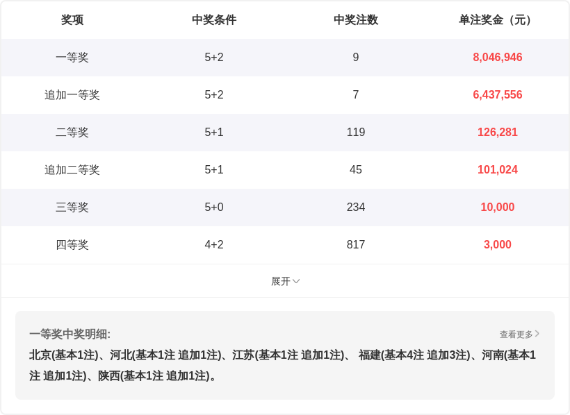 超级大乐透25122期开奖结果02 03 06 16 17 + 04 05,五区比3:0:2:0:0,和值尾4,三区比3:2:0,蓝球号码奇偶为偶、奇。