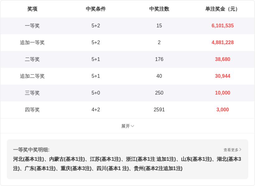 | 期号 | 开奖号码 | 一区 | 二区 | 三区 |