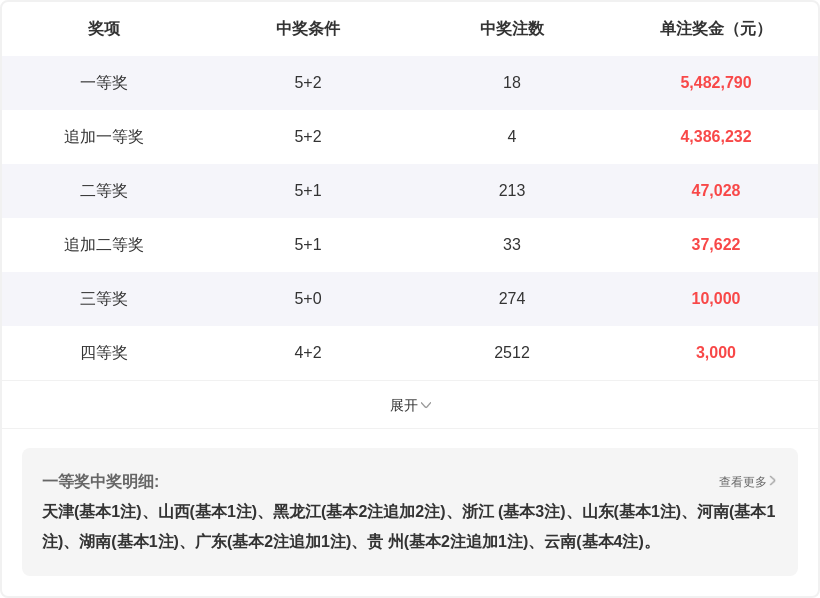 | 期号 | 开奖号码 | 一区 | 二区 | 三区 |