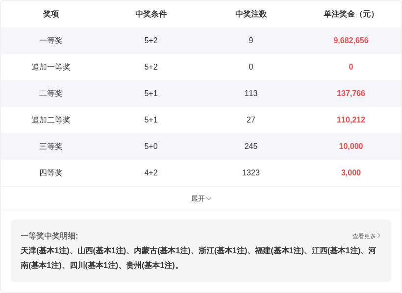 | 25123 | 08 13 24 25 31 + 04 10 | 2:3 | 8 | 101 |