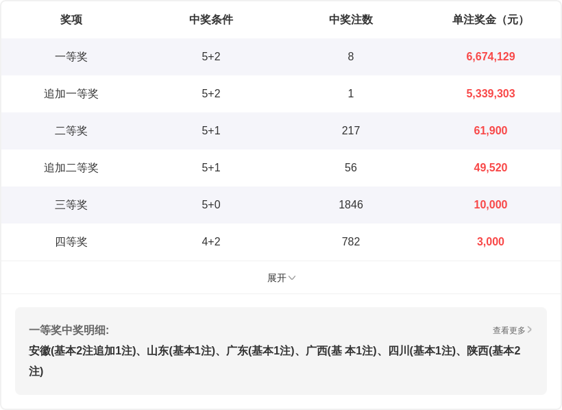 | 期号 | 开奖号码 | 跨度 | 五区比 | 连号 |