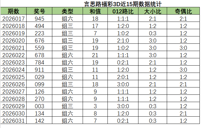 言思路福彩3D第2026032期,实用选号思路和方案分享