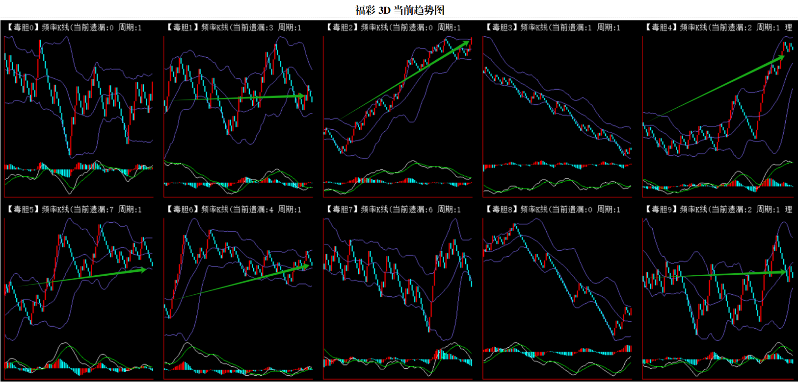 整体趋势上行,上边沿线趋势向上,下边沿趋势向上,节点震荡,当前遗漏1期,本期关注。