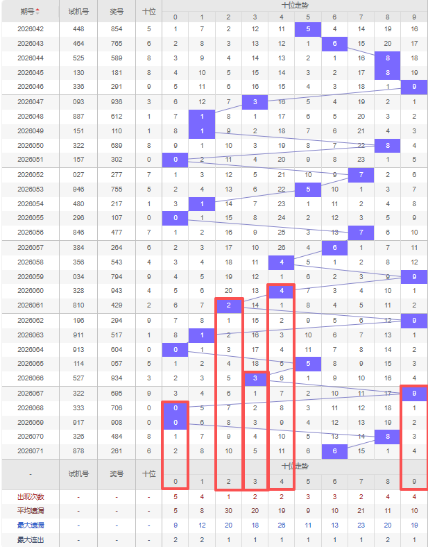 上期十位:6,近10期十位出号 :9 1 0 5 3 9 0 0 8 6,最近10期大小变化分别:大小小大小大小小大大,奇偶变化分别:奇奇偶奇奇奇偶偶偶偶,质合变化分别:合质合质质合合合合合,根据近10期的规律本期综上所述十位出号推荐5个号码:0 2 3 4 9。