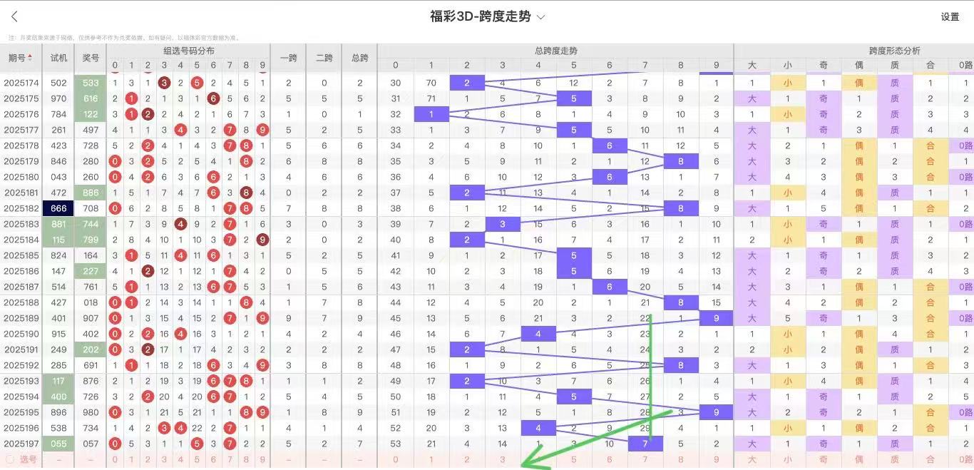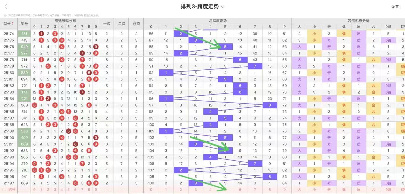 10期内跨度走势为:4-1-5-3-5-4-7-2-8-3,10期内大小跨比:4:6,奇偶跨比6:4,百期内跨度3共开出14次,下期数据:8 5 7 6 1 2 5 3 5 3 5 5 5近期度较热,考虑跨度3开出后容易出大跨度,近期大小规律下大:奇:质,所以接下来继续大跨,奇跨度表现!