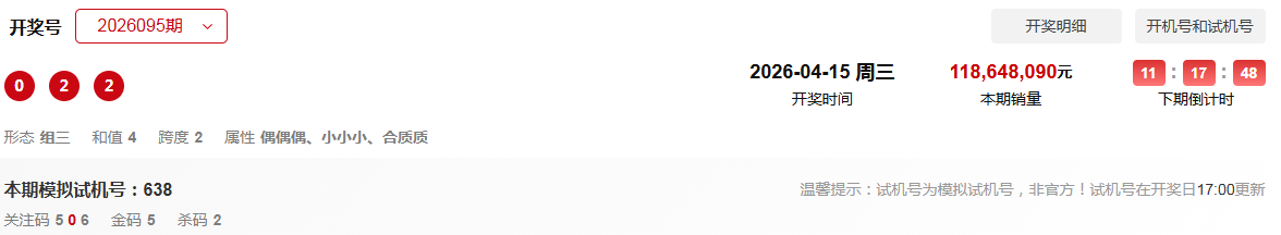福彩3D第096期:上期通杀一码连续三天中断,杀和值尾命中