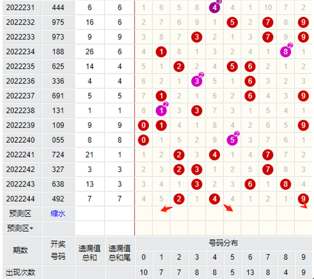 因为上期开奖号码是492,很显然我们直播期间说的排除两码合为9的成功了,开出了136的两码合,我们注意这个两码合3,终于开出了,但是我们要知道最小两码合3和4依然没有开出,我们必须要坚持我们的思路,这个方向中出只是时间早晚的问题,我们拭目以待。