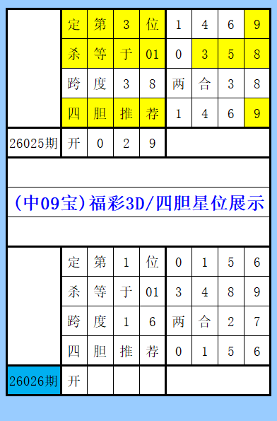 福彩3D第026期综合图文(中09宝),单选推荐