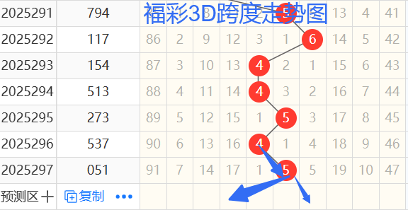 依次是44545跨度,按照路数转换关系来看,那么跨度我们暂定147369跨 ,本期个人比较看好3 6跨。