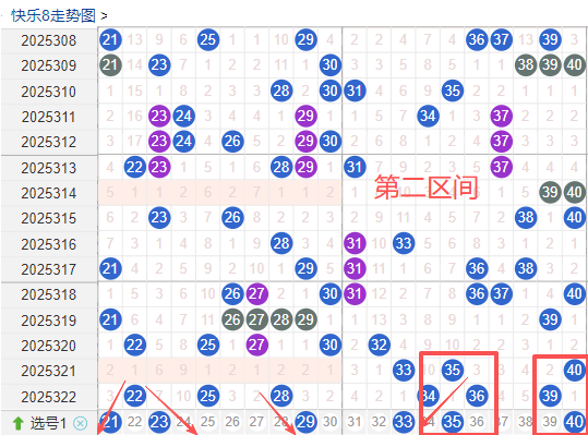 上期二区开出6个奖号(22.25.28.34.36.39)上期回顾二区开出6个奖号二区间在上期落位同比前期的话呈现了一个递增的落位趋势,先来看本期号码21整体活跃度较热,在近 30 期里有一定的间歇性出现,不是每期都开,整体走势不是很稳定。号码28近期热度较热,间隔性还是很稳定,说明其在当前阶段活跃度较热注意防守。号码29近期活跃度较热,有一定的间歇性近期整体走势相对平稳有特别明显的冷热趋势变化,号码40近30期内活跃度较热,没有明显的连续出现形态走势,整体表现比较稳定。