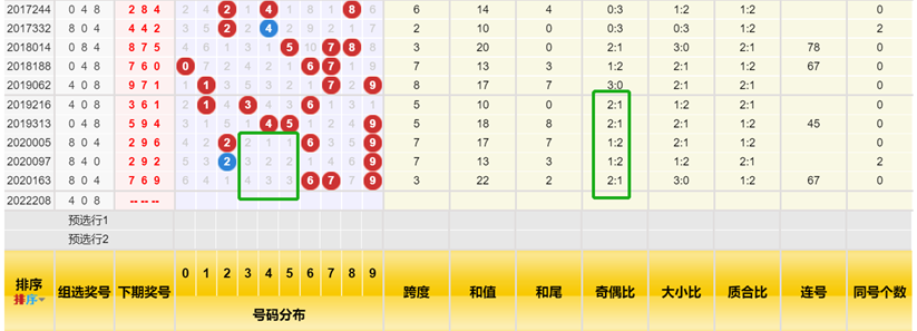 另外还有一点信息也是非常重要,我们可以关注号码的奇偶比,从这里可以找到直接命中号码的核武器。